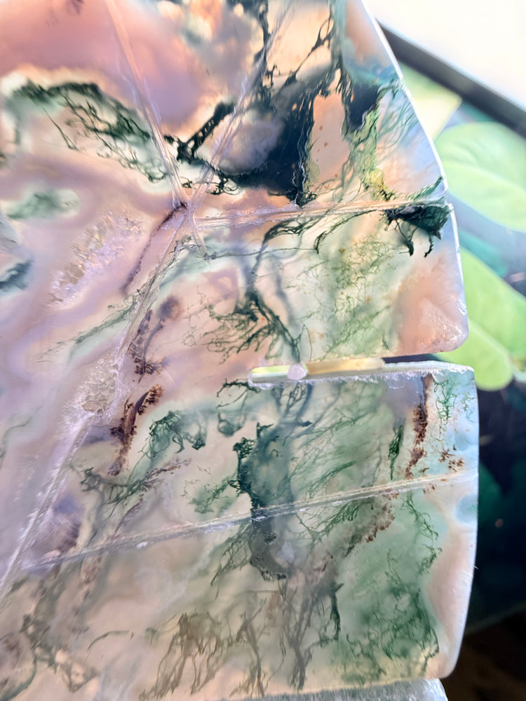 Your Moss Agate Leaf mirrors the patterns of chlorophyll, roots, and woodland ecosystems — turning your plant space into a living reflection of the natural world.