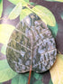 Carved into the shape of a leaf, this piece feels like a fossilized breath of the forest — a symbol of renewal, balance, and the quiet intelligence of living systems.