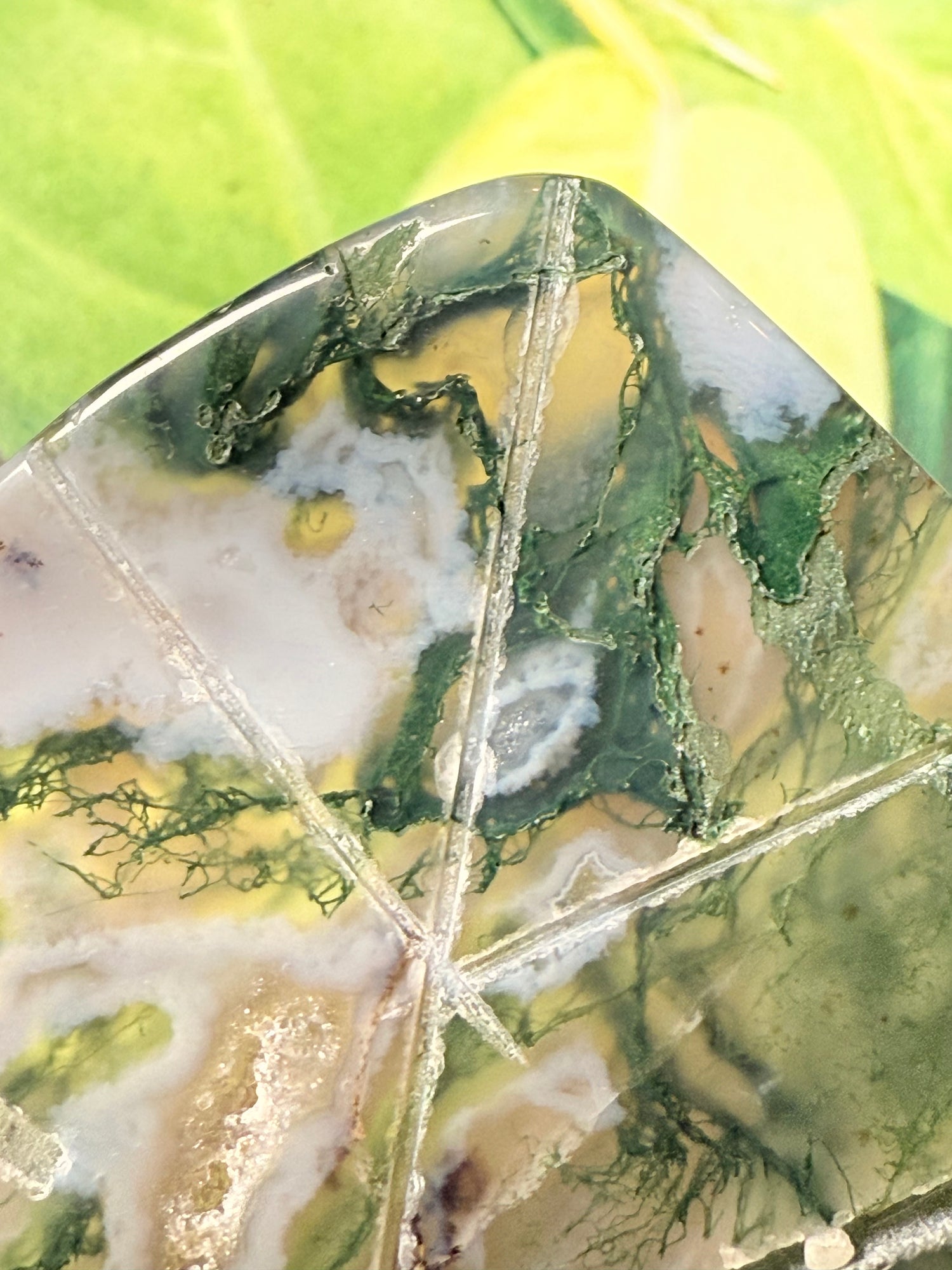Organic, grounding, and alive with forest energy, our Moss Agate Leaf Carving is a celebration of nature captured in stone.