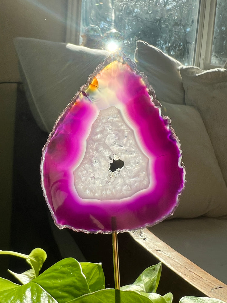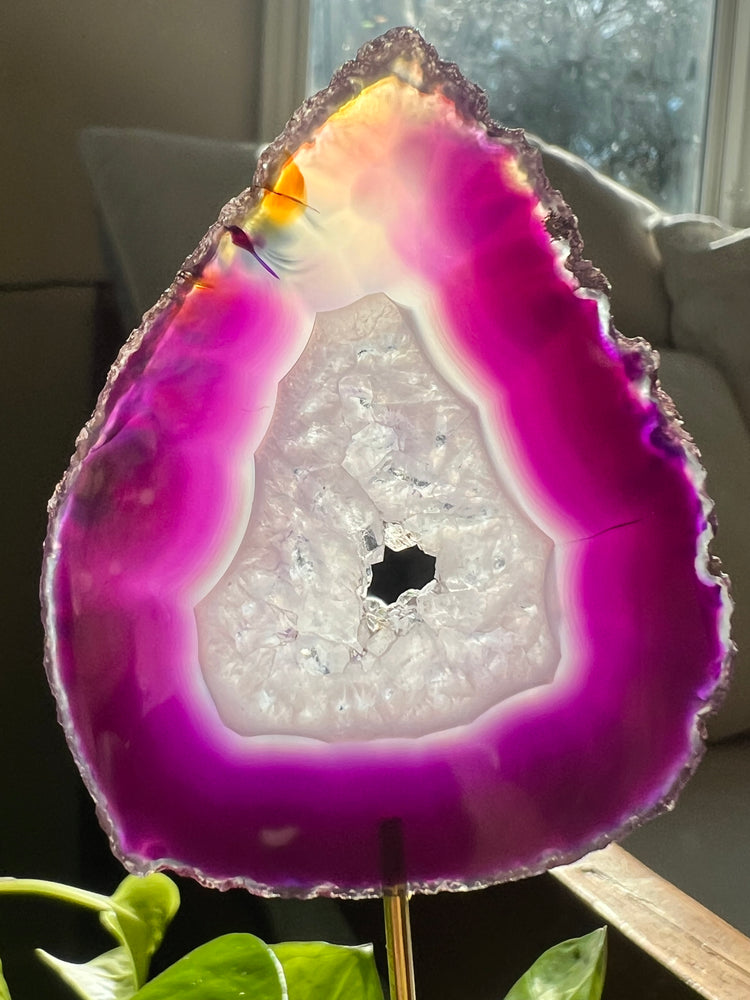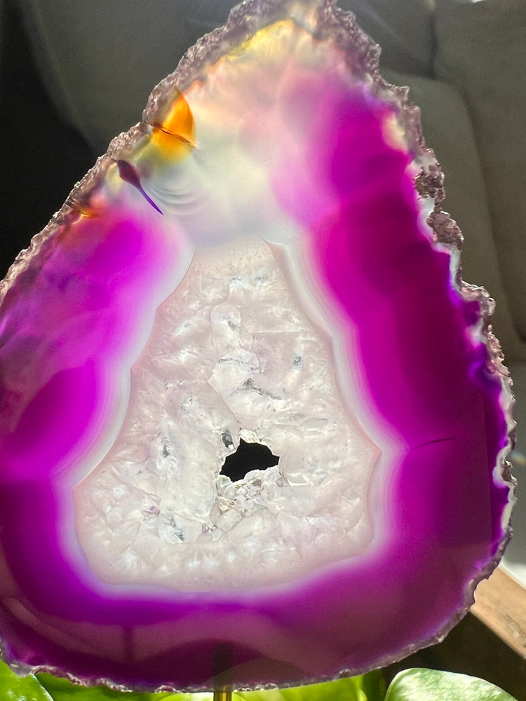 This is an unbelievably unique agate, light and airy and incredibly beautiful color of purple but it magically changes color to a magenta color in natural sunlight!