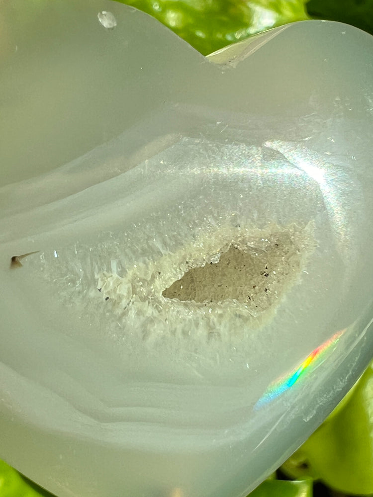 Agate heart with drusy cave. This piece also glows & changes color in sunlight.