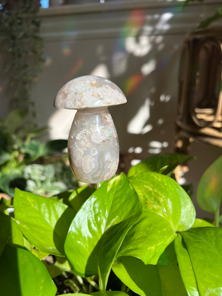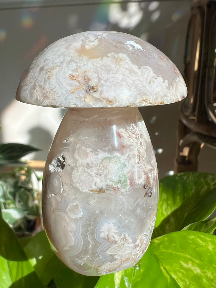 Large flower agate mushroom with beautiful flowers and colors all over. only one available. RARE*