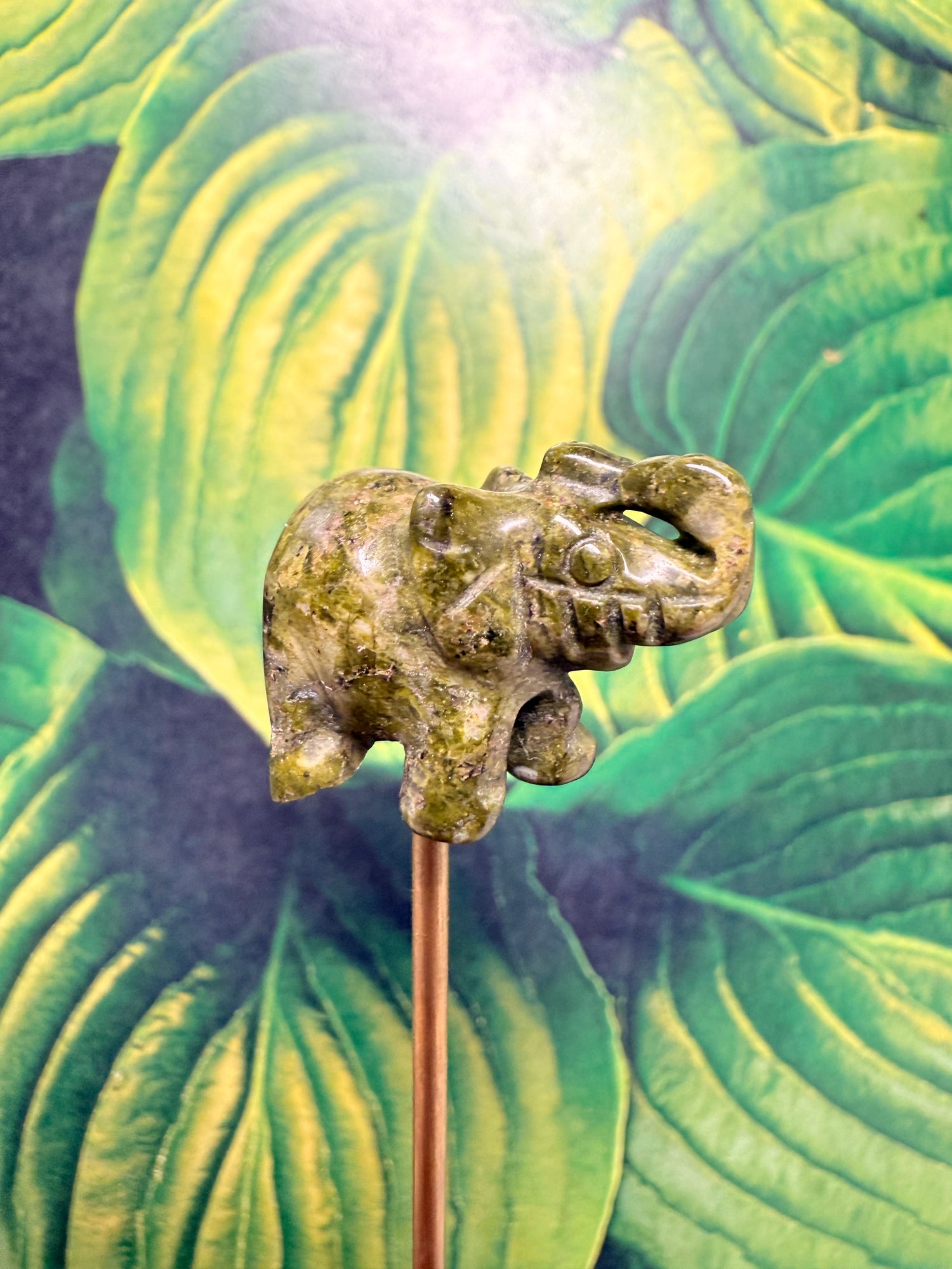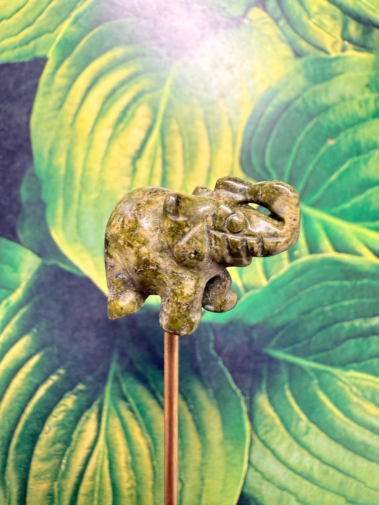 - Mini carved Unakite elephant (each one uniquely marbled in earthy greens and warm pinks)