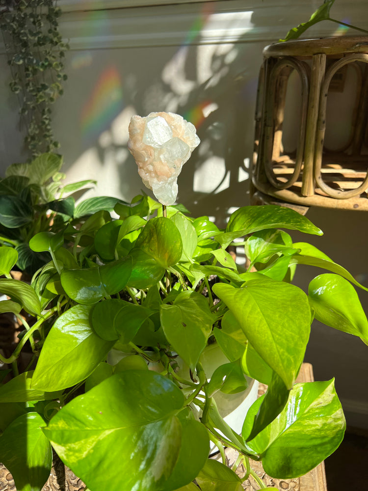 Peach Apophyllite and stillbite Plant Crystal