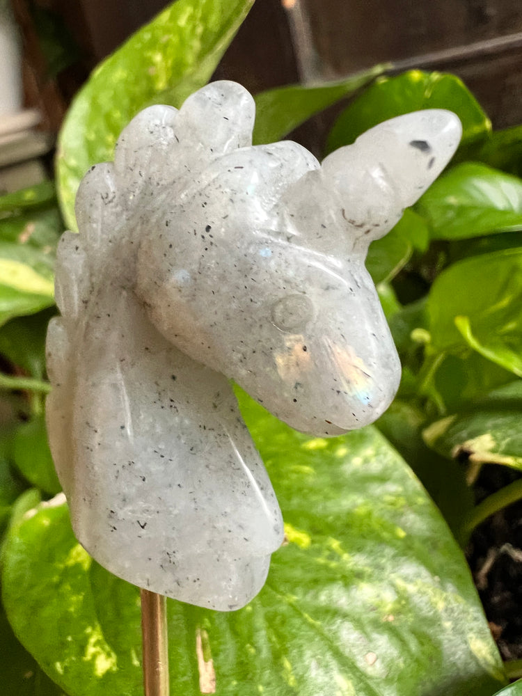 Labradorite Unicorn Plant Crystal with natural rainbow flash! 🤩 A very special & unique crystal with gorgeous hues and energy! This crystal has so much MAGIC to offer.