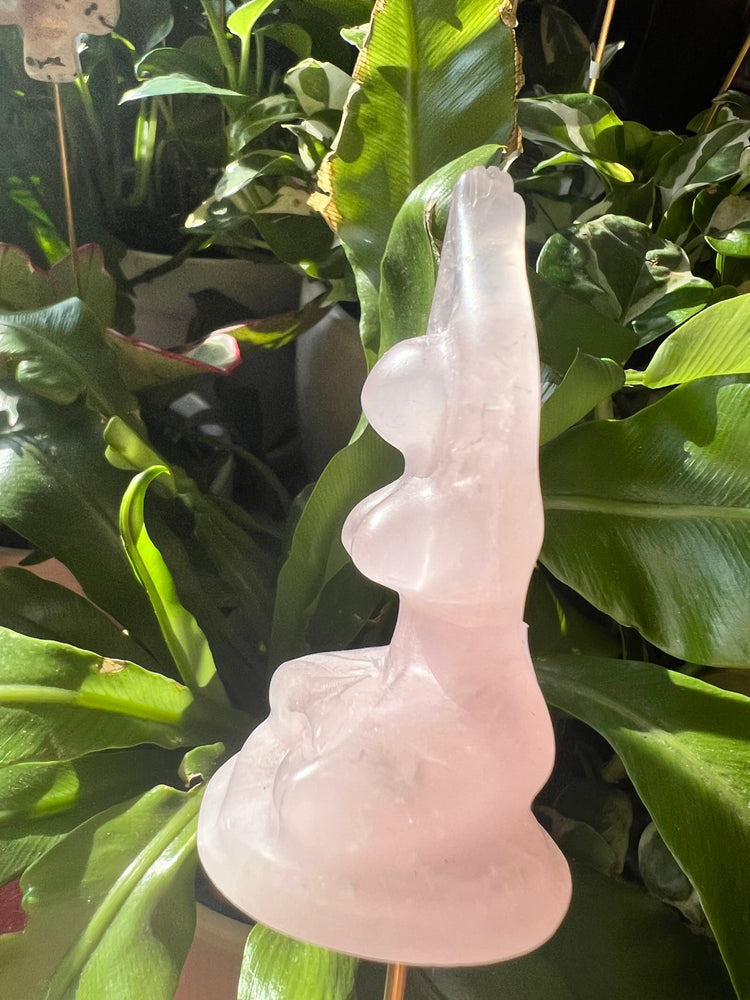 Small hand-carved Yogini Rose Quartz Plant Crystal. A peaceful addition of feminine Shakti energy. Embody calm, grounded, centered, meditative energy daily . 🧘♀️