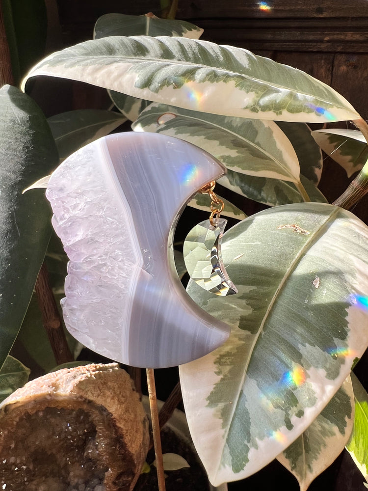 Suncatcher Plant Crystal combo with a real Swarovski moon prism. When sun shines through this Plant Crystal it will put beautiful rainbows on your plants. 🌈🤗✨