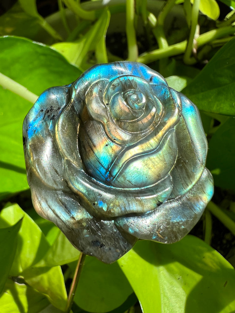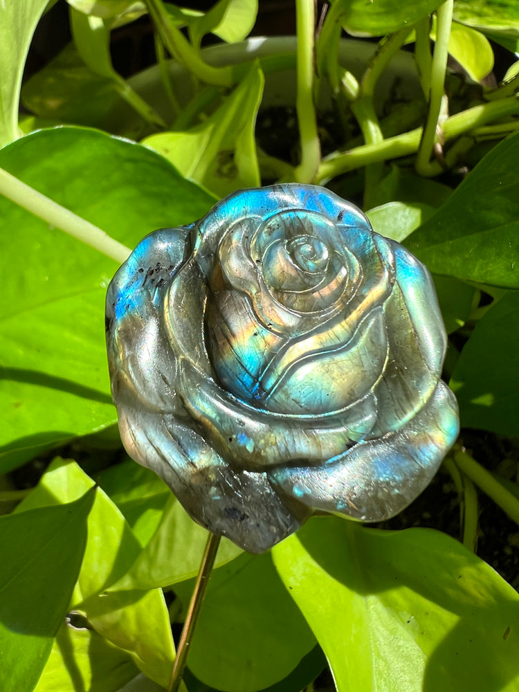 beautiful labradorite carved rose with stunning natural flash and prismatic rainbows. Gift A rose that lasts forever🌹