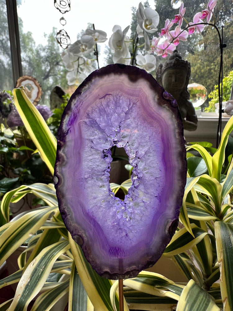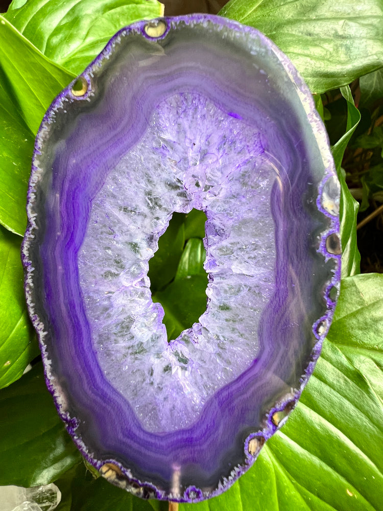 Lindze sorts through hundreds of agates at a time to find ones with portals (open centers) as they are more rare. It is a labor of love to offer unique and rare crystals like this.