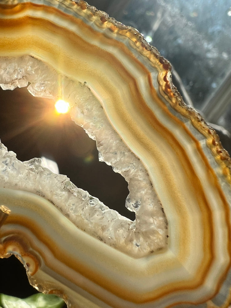 Natural Agate with beautiful banding and lacing dimension that glows and magically changes color in natural sunlight!