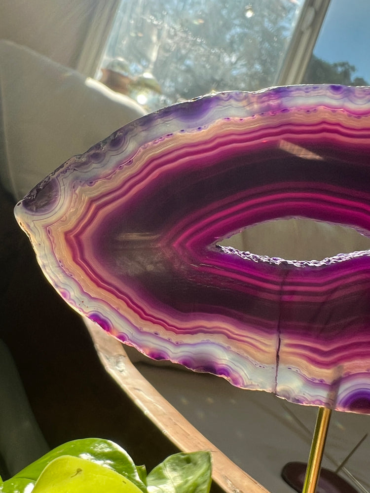 Agate with beautiful banding and lacing detail that glows and magically changes color in natural sunlight!