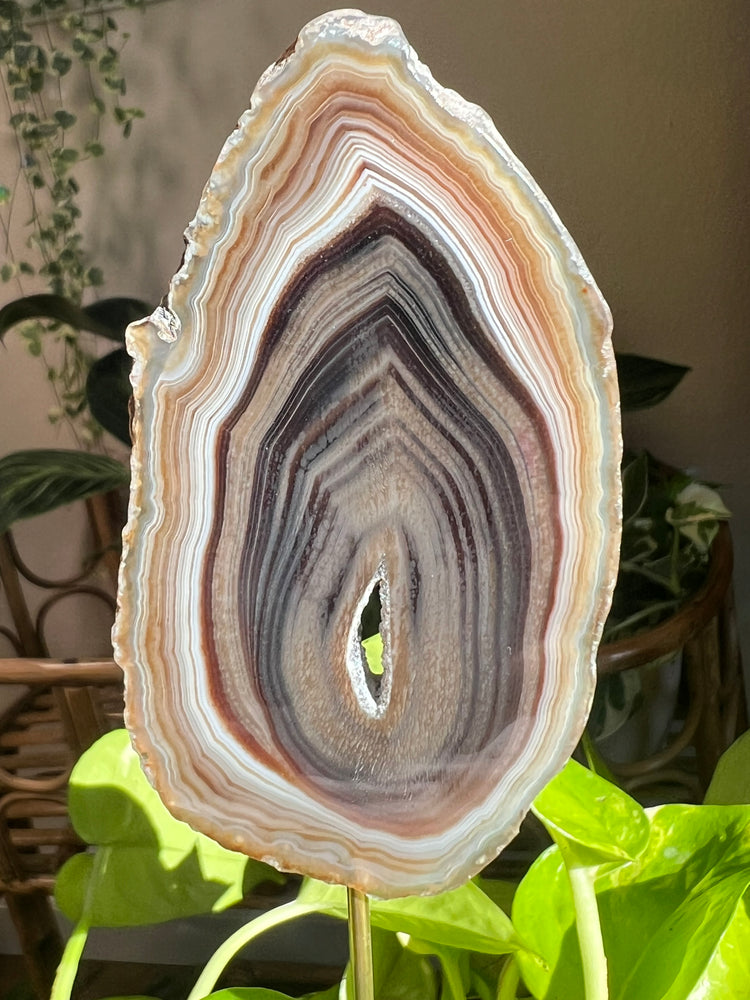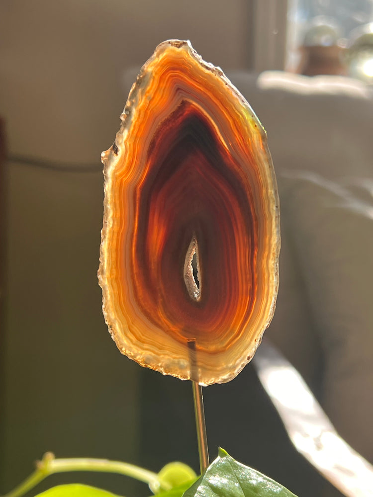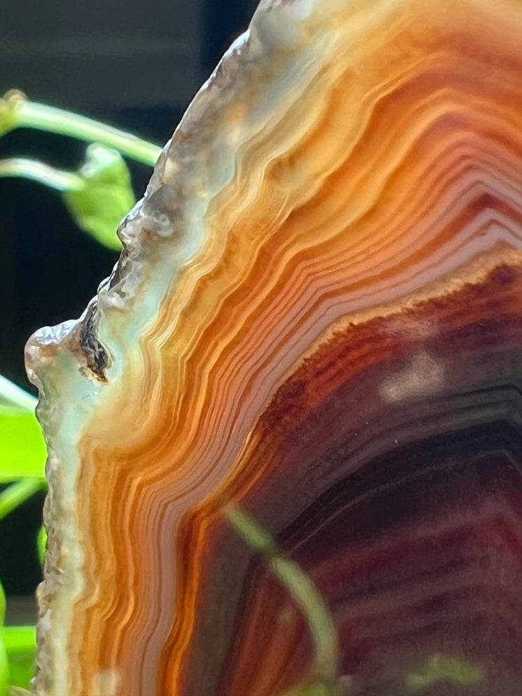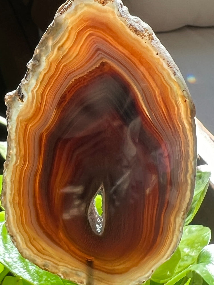 Agate that glows and magically changes color in natural sunlight! So much dimension in this piece!