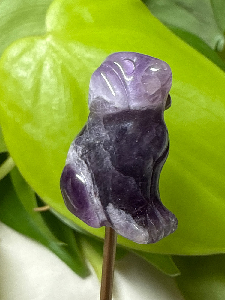 - Mini carved Amethyst dog (each one uniquely colored in soft violets + natural patterns)