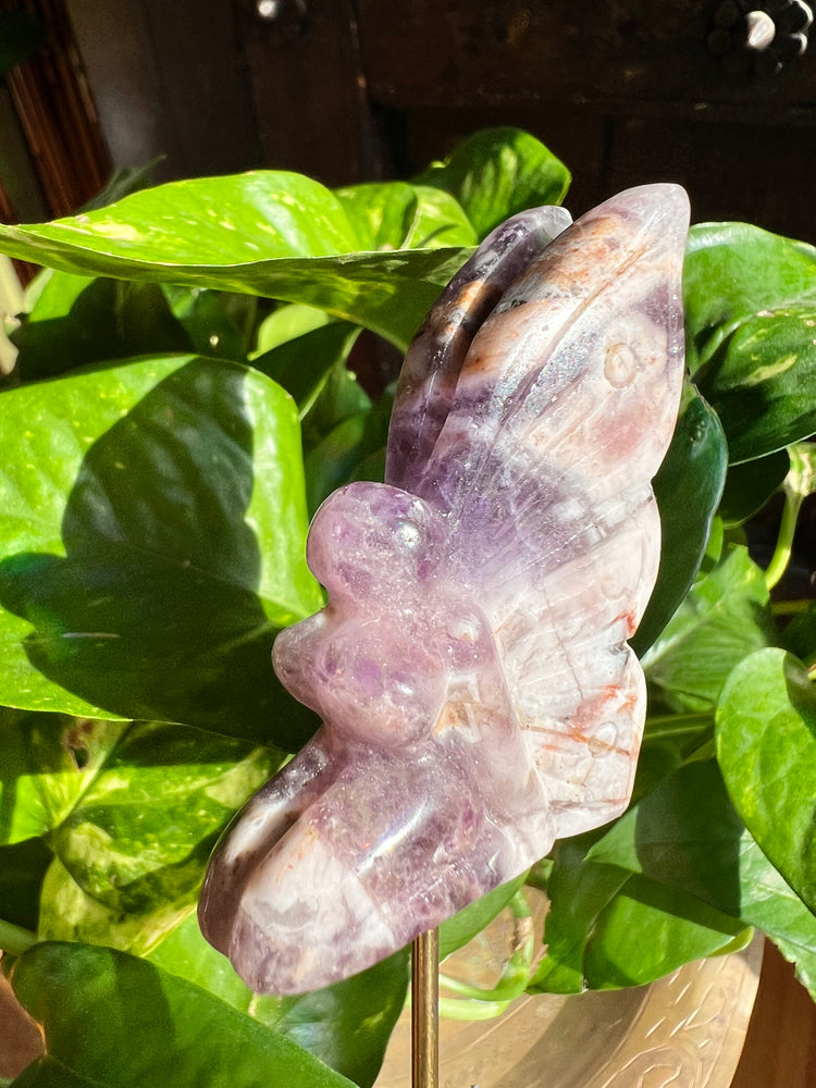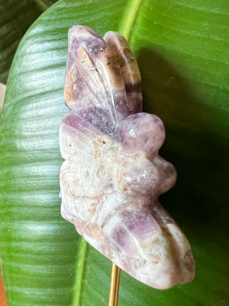 Hand-carved fairy made of flower agate & pink amethyst! A magical, feminine addition to any space!