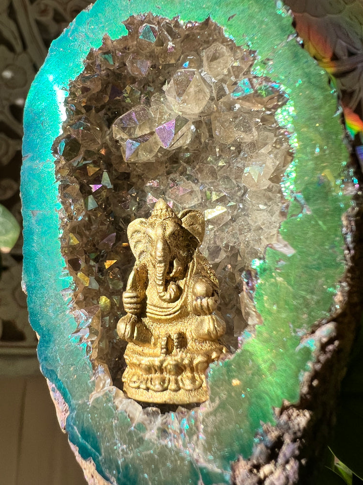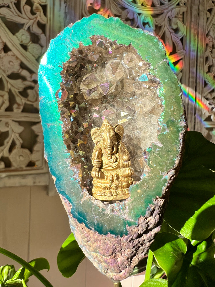 Ganesha’s Temple Angel Aura Geode Plant Crystal