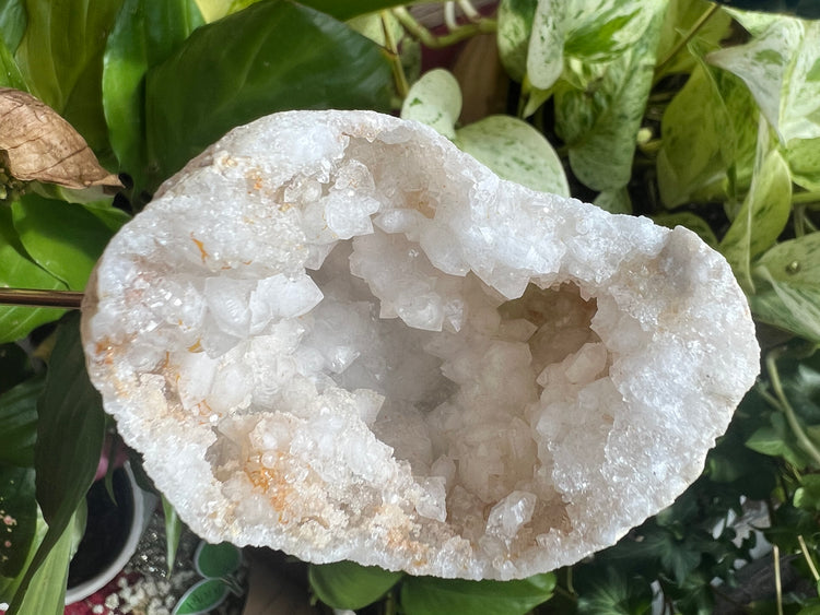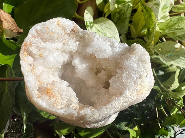 Raw, natural & earthy Moroccan Geode Plant Crystal cave with hundreds of Quartz points alllll over the inside of this cave, along with natural citrine crystal.✨