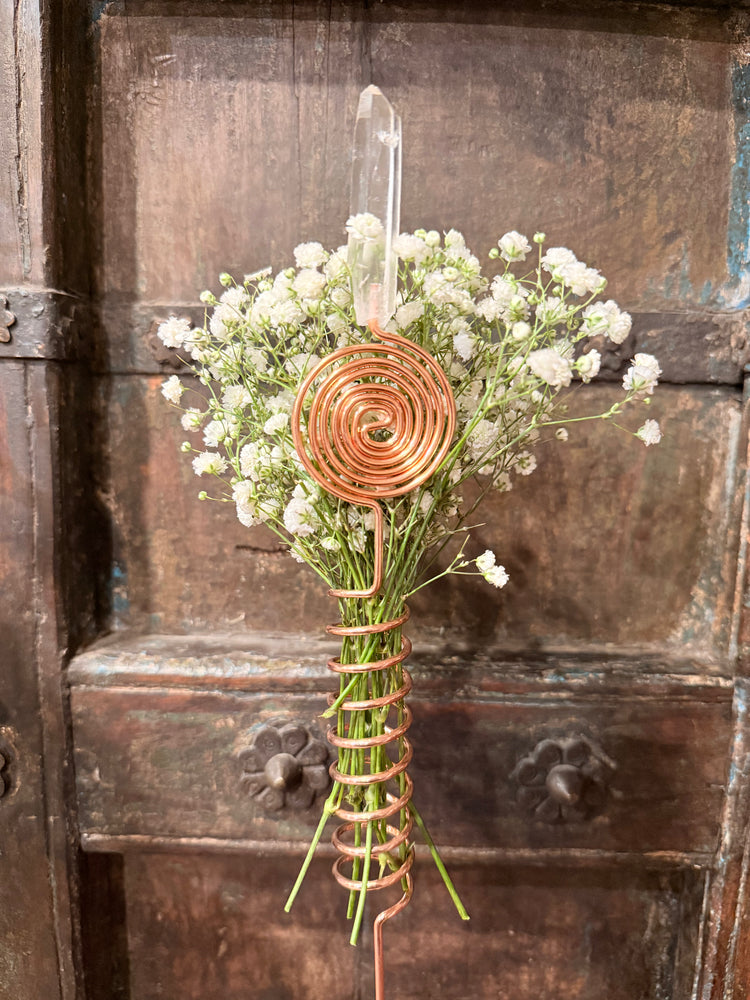 When quartz meets copper, the crystal’s vibrational intelligence is magnified—creating a bio-resonant circuit between Earth, sky, and plant. The coil’s spiral geometry mirrors the natural vortices found in shells, seeds, and galaxies, channeling energy downward into the root zone while radiating harmonic coherence outward into the surrounding space.
