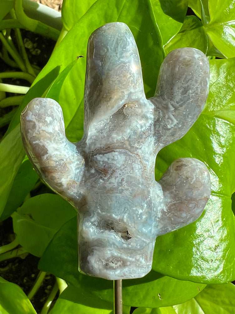 Misty Blue Lace Agate with Drusy Caves Cactus Plant Crystal