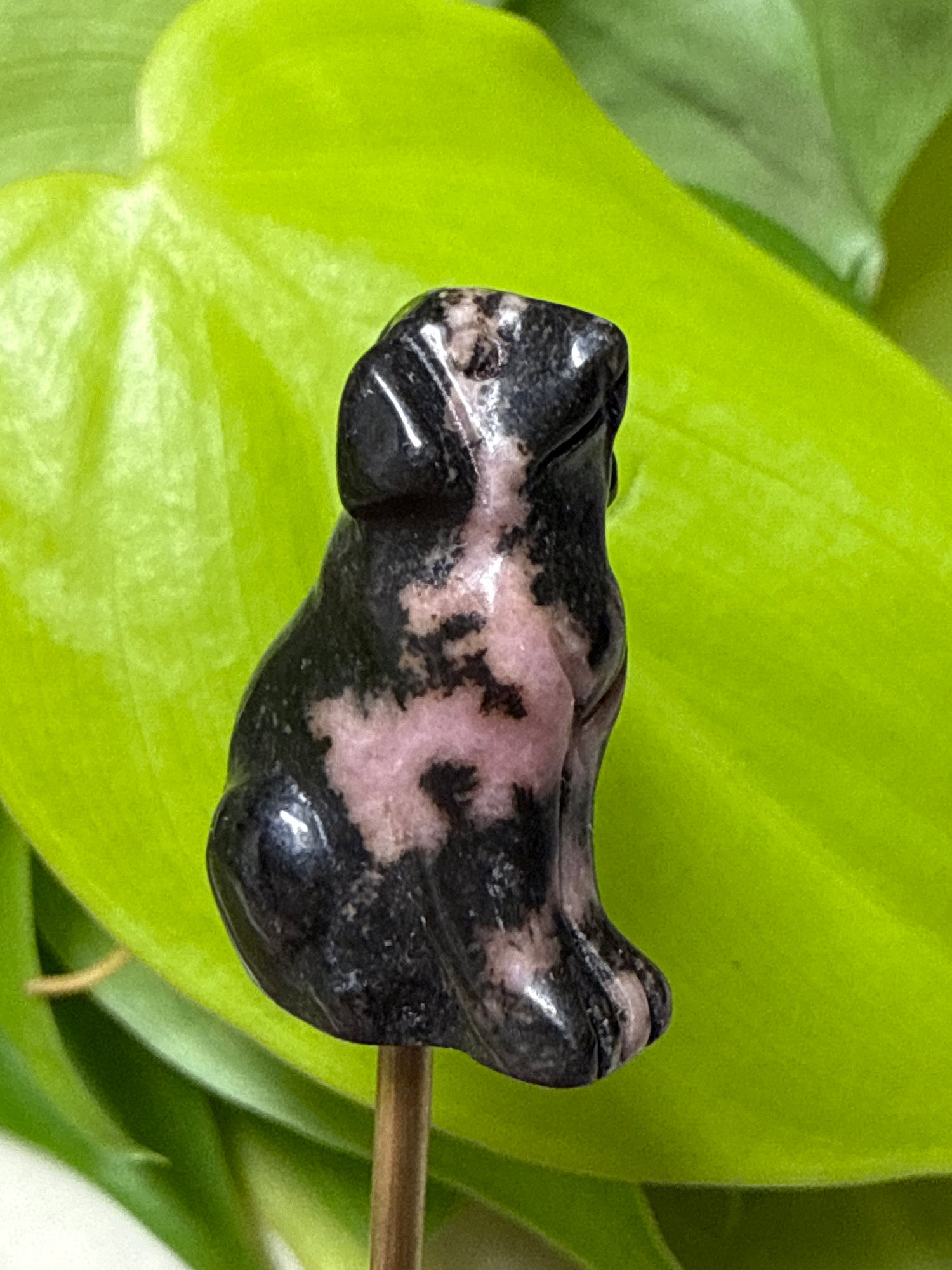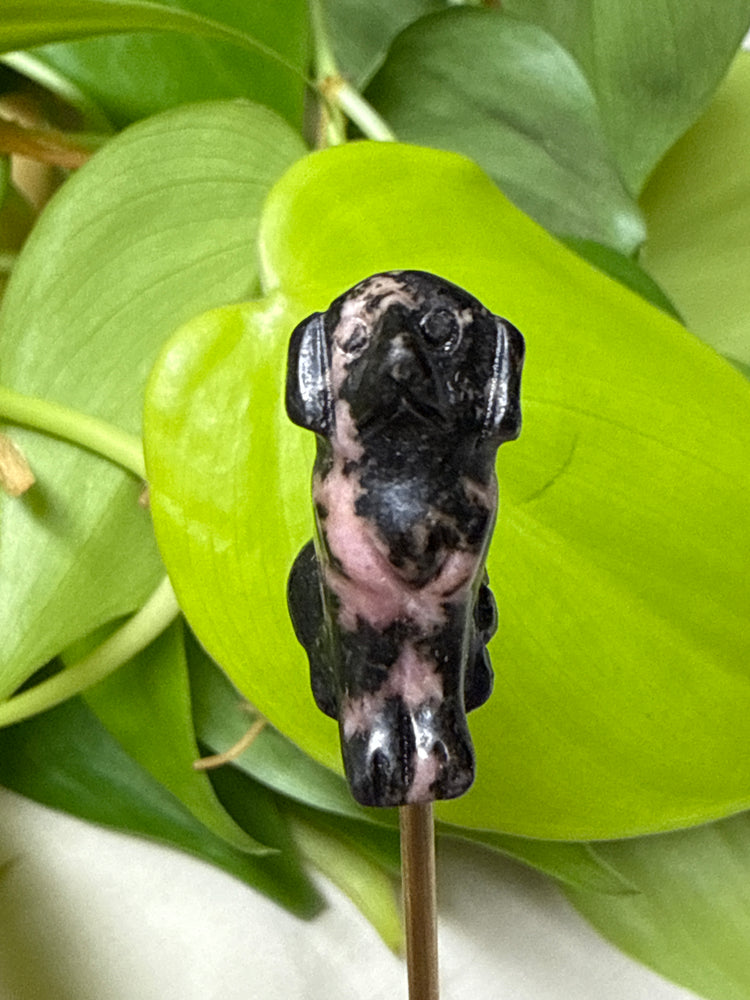 - Mini carved Rhodonite dog (each one uniquely patterned with natural pink + grounding black veining)