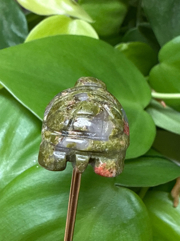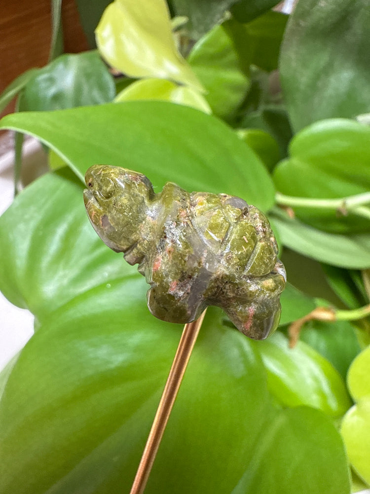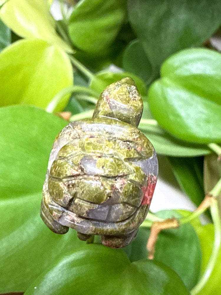 - Mini carved Unakite turtle (each one uniquely marbled in earthy greens + warm pinks)