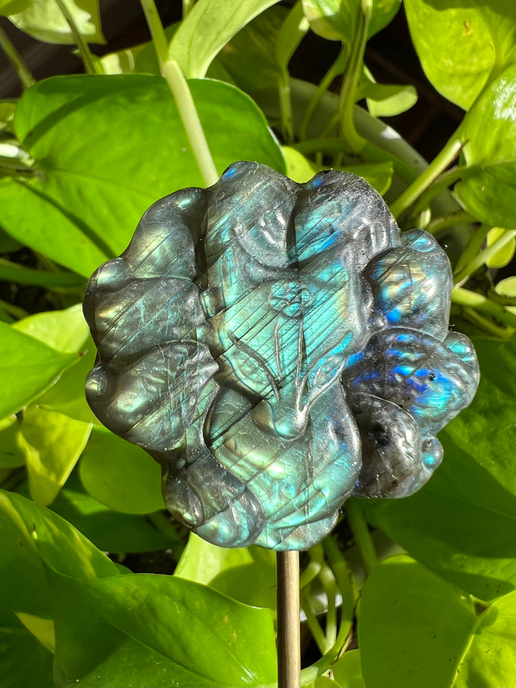 ONLY ONE AVAILABLE, don’t delay! Beautifully and intricately carved fox with stunning, natural blue flash and natural rainbows.