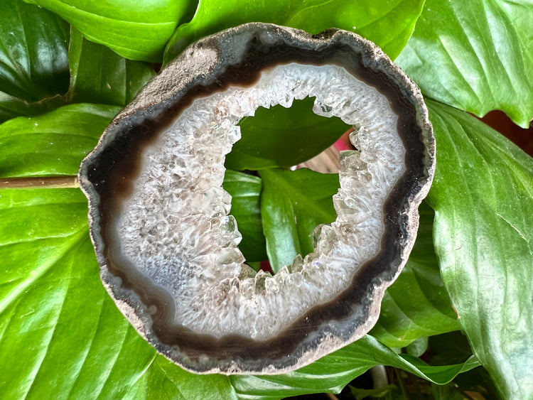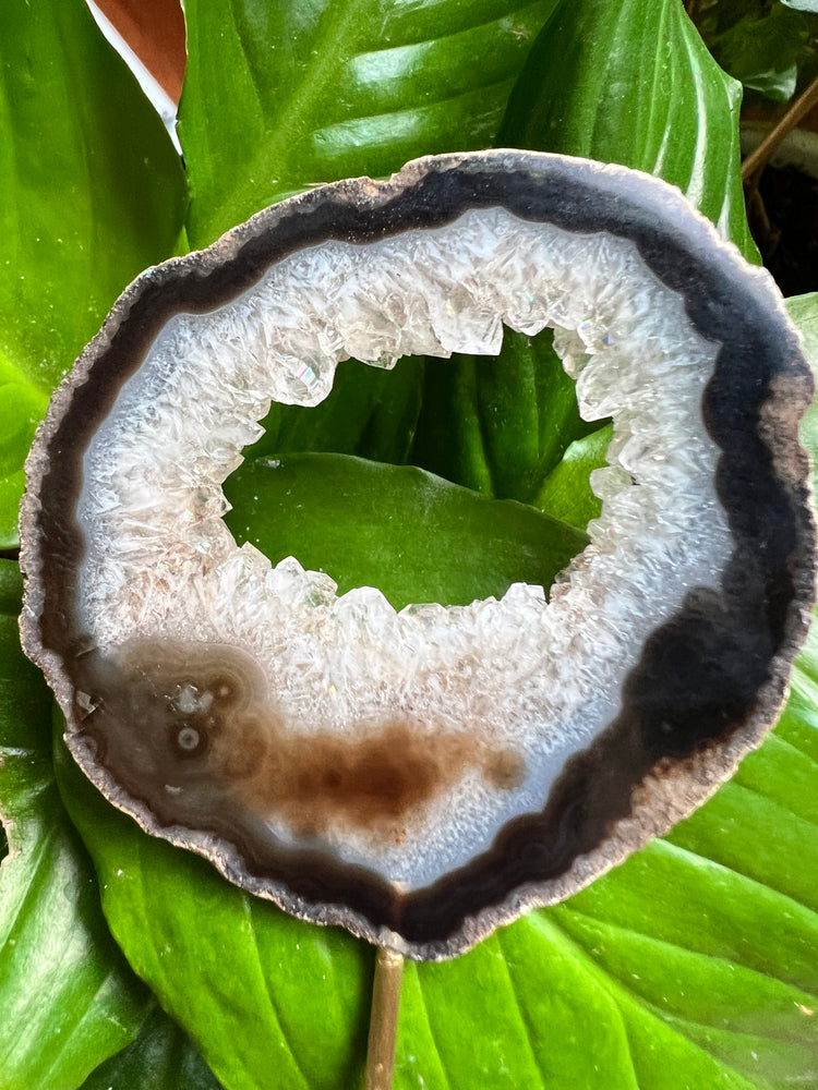 Lindze sorts through hundreds of agates at a time to find ones with portals (open centers) as they are more rare. It is a labor of love to offer unique and rare crystals like this.