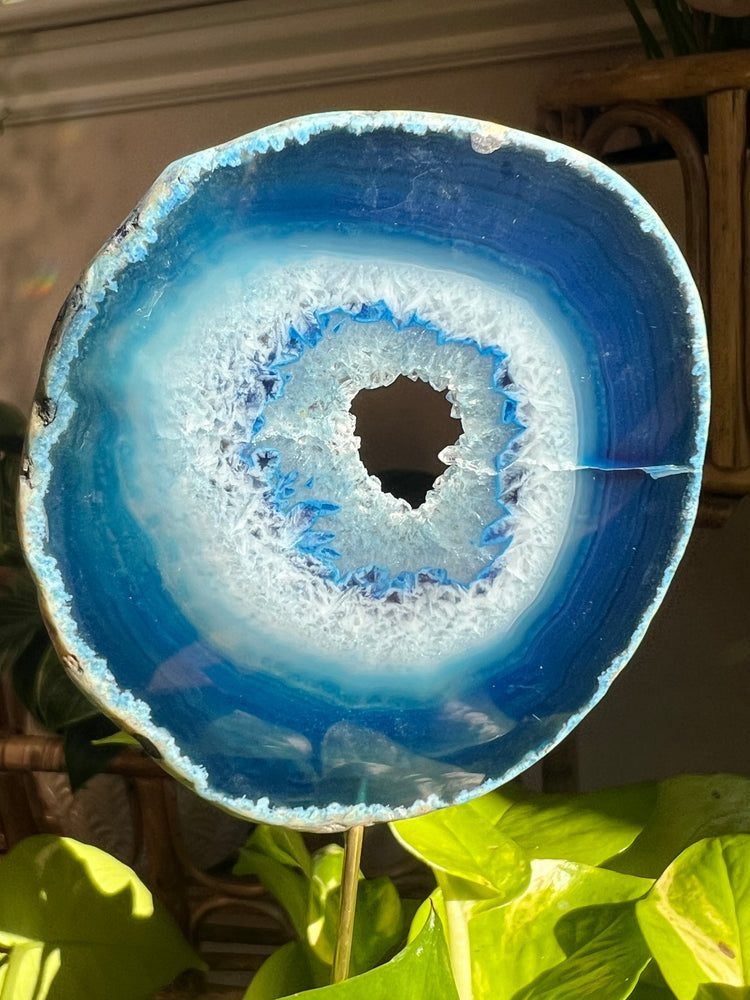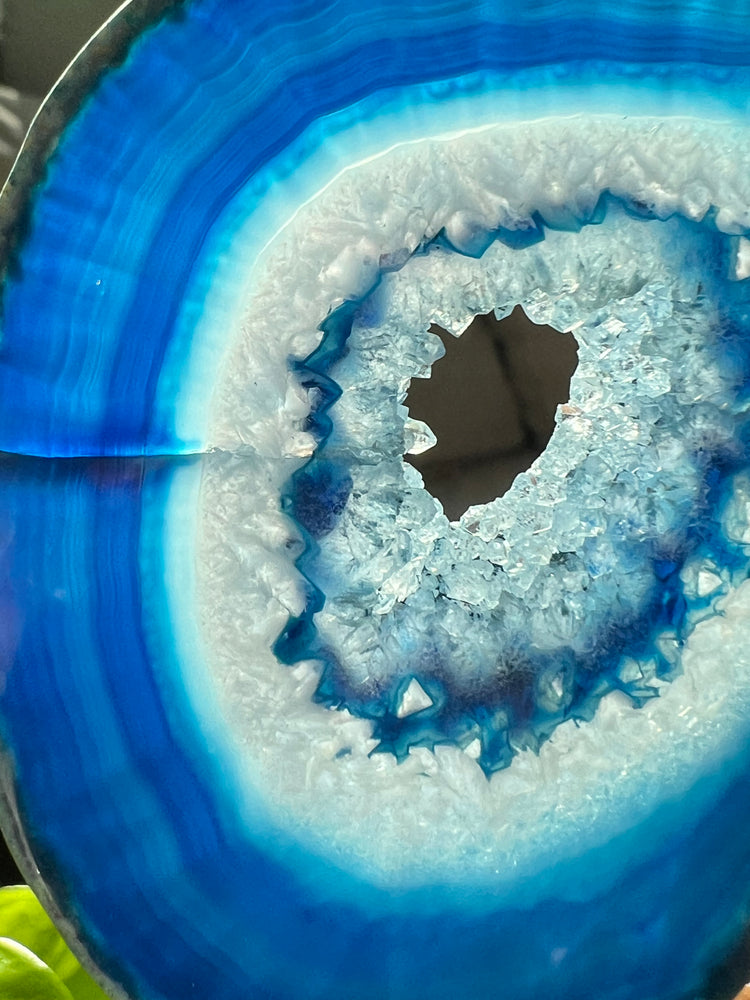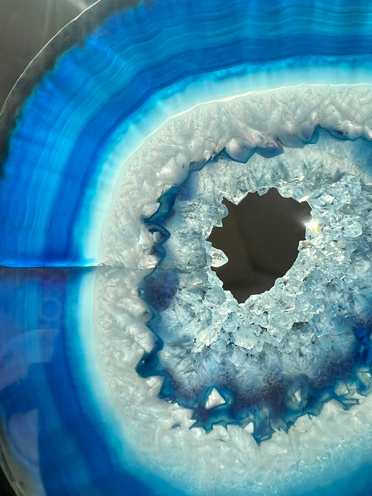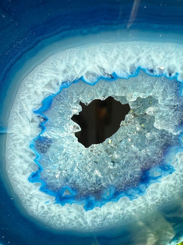 Blue Agate with beautiful banding and lacing dimension that glows and magically changes color in natural sunlight!