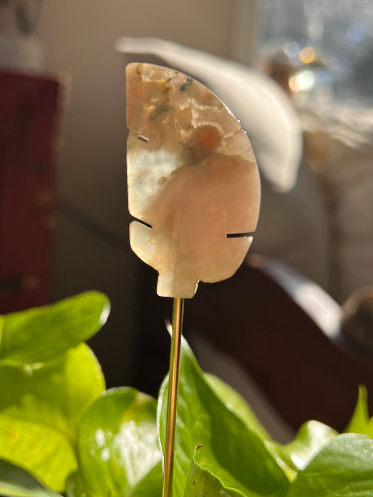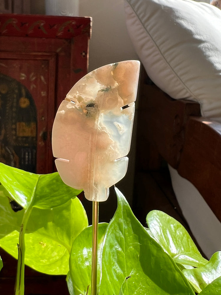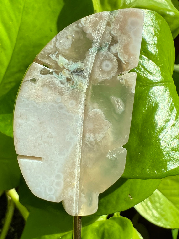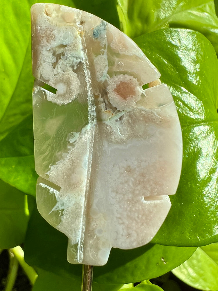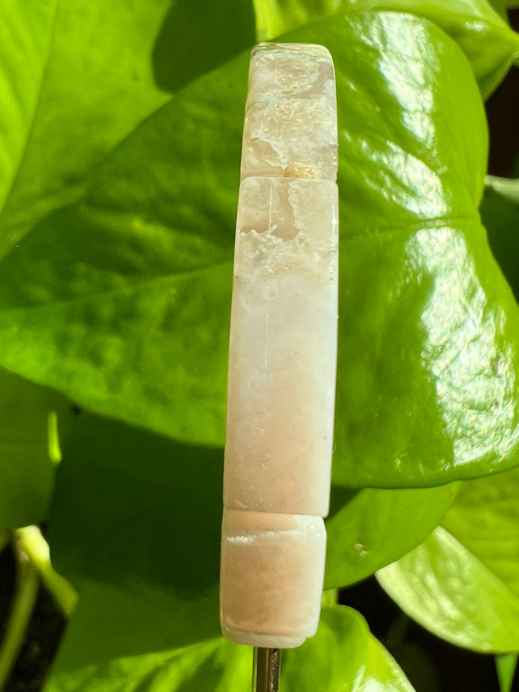 Beuatiful pastel colors and flowers of flower agate. This piece also glows in the sunlight.