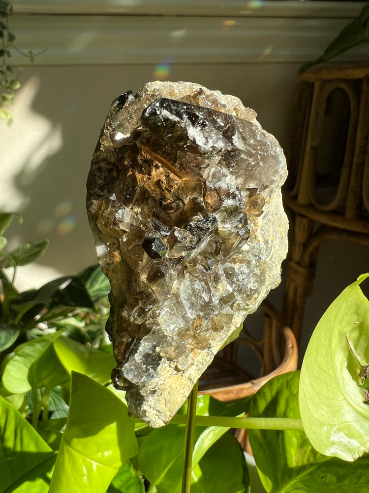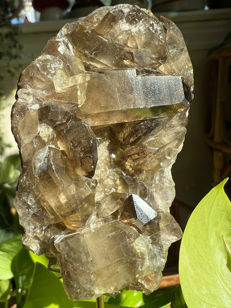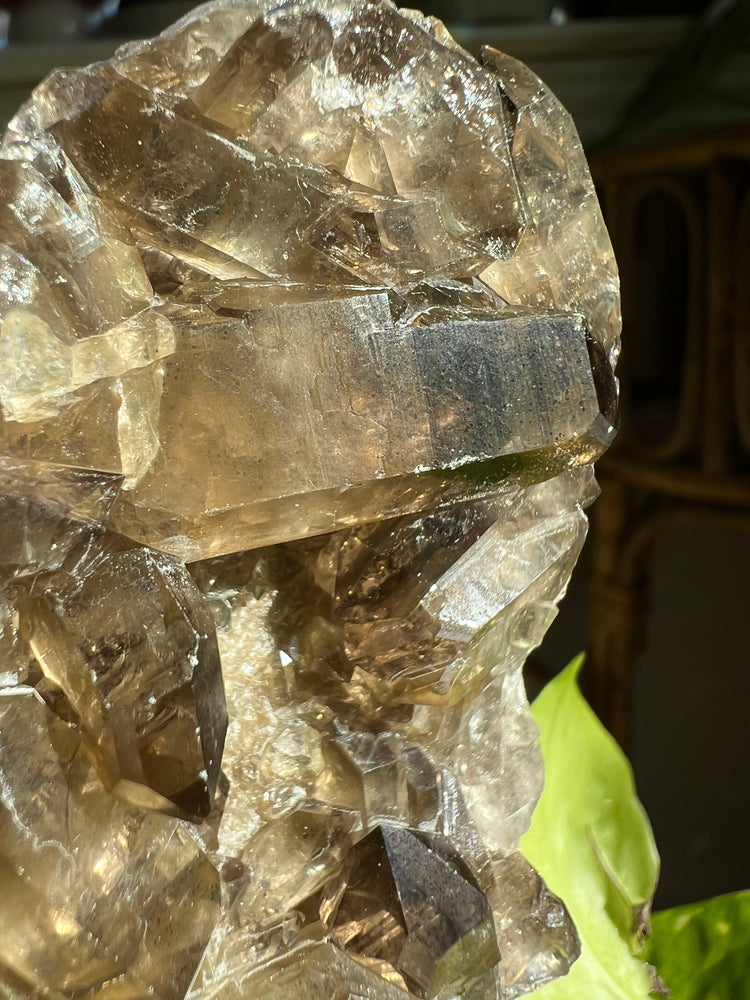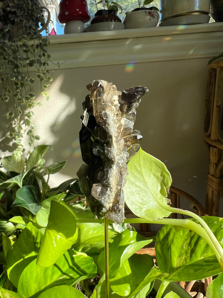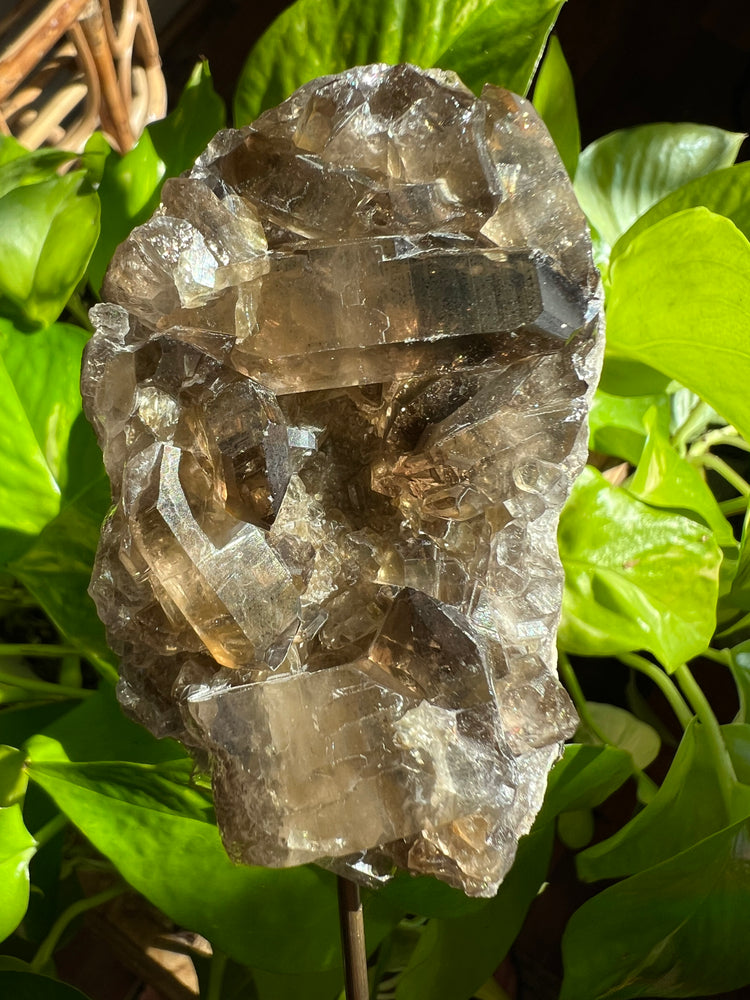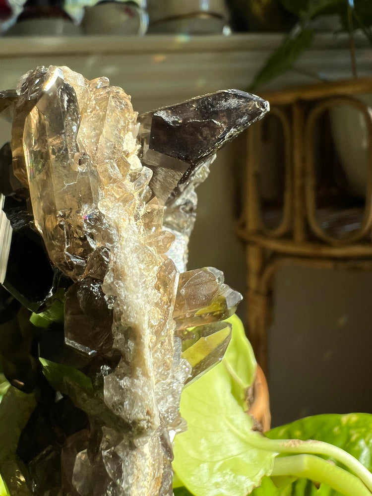 This Large Smokey Quartz is special because you get two crystals for the price of one! One stunning cluster design on the front and a whole other story and crystal formations on the back! A very special and unique piece!
