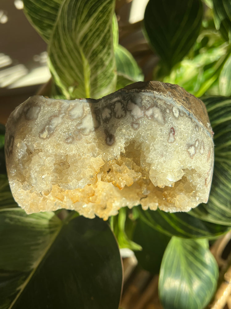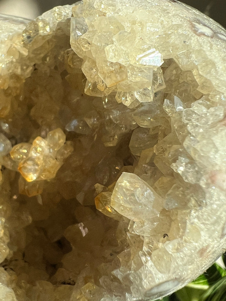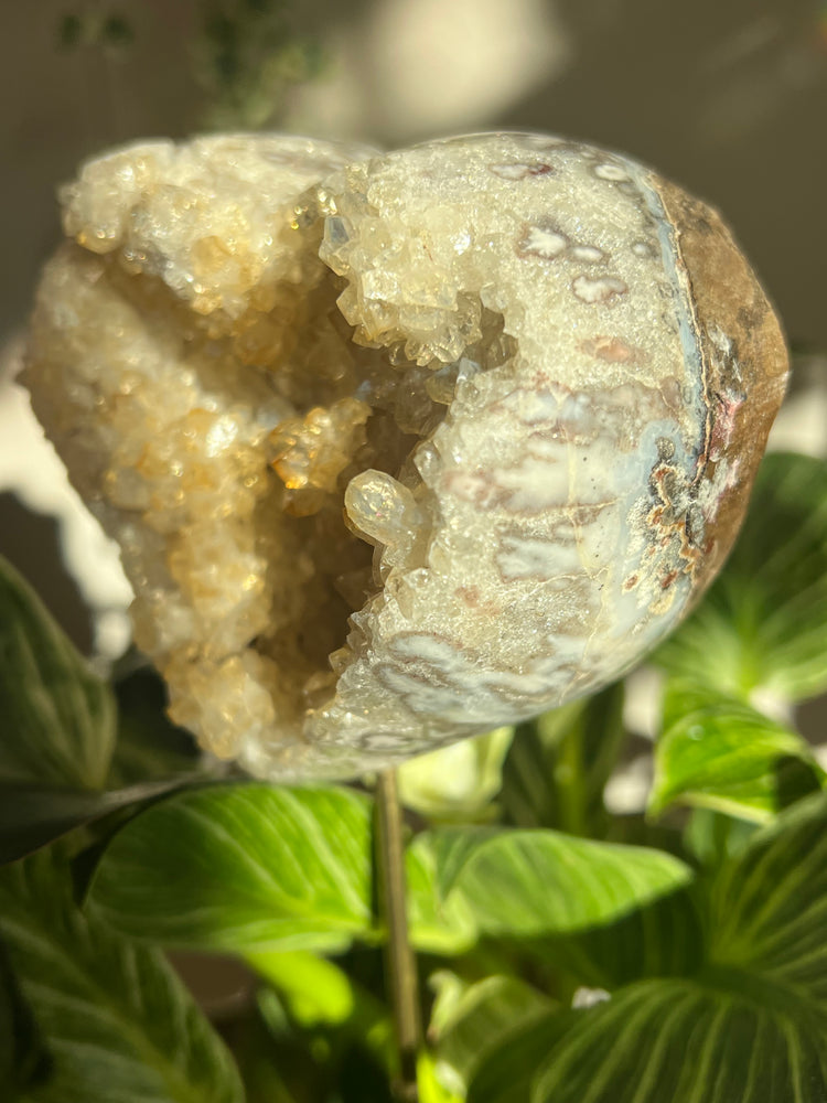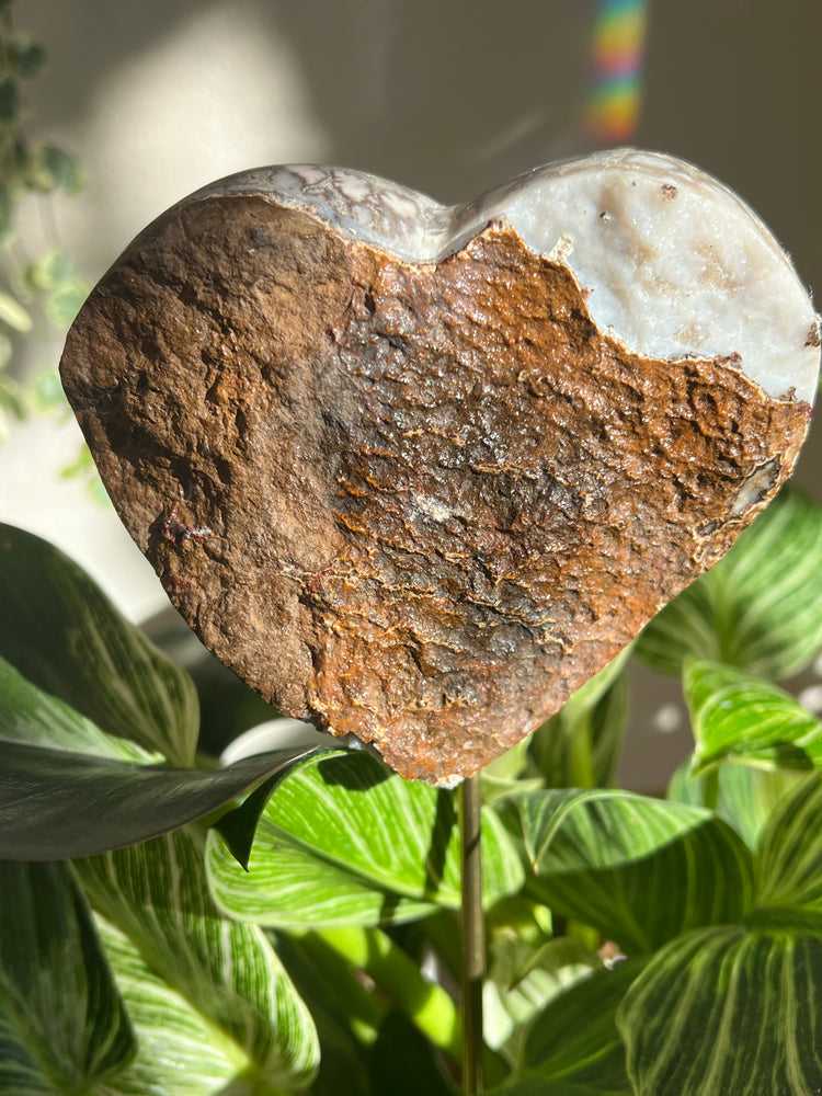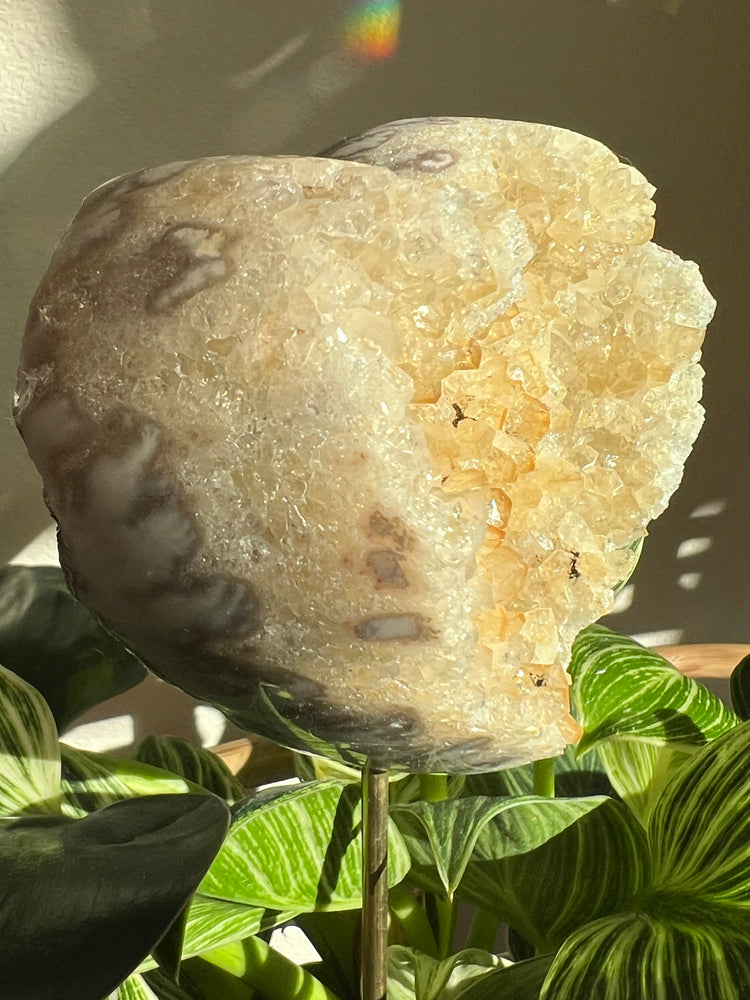 Very large heart with gemmy quality citrine points that fill the entire heart! RARE. Perfect for medium to large size plants. ONLY ONE AVAILABLE.