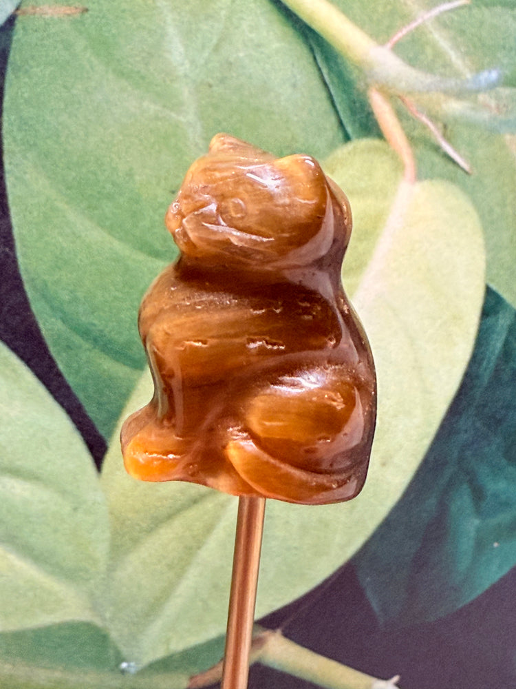 - Mini carved Tiger’s Eye cat (each one uniquely banded with natural golden shimmer)