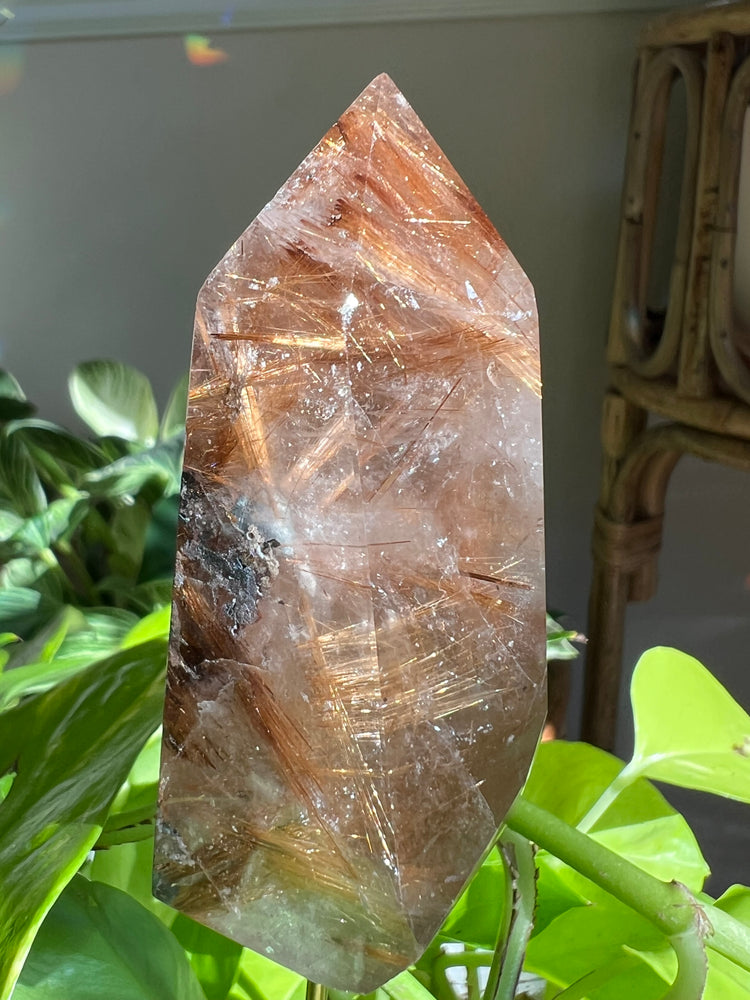 A high vibrational crystal that is powerful for manifesting. A truly one in a million, rare specimen. golden threads run all through this piece, catching the light from every angle.