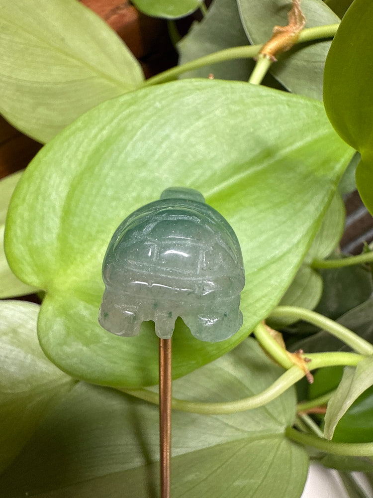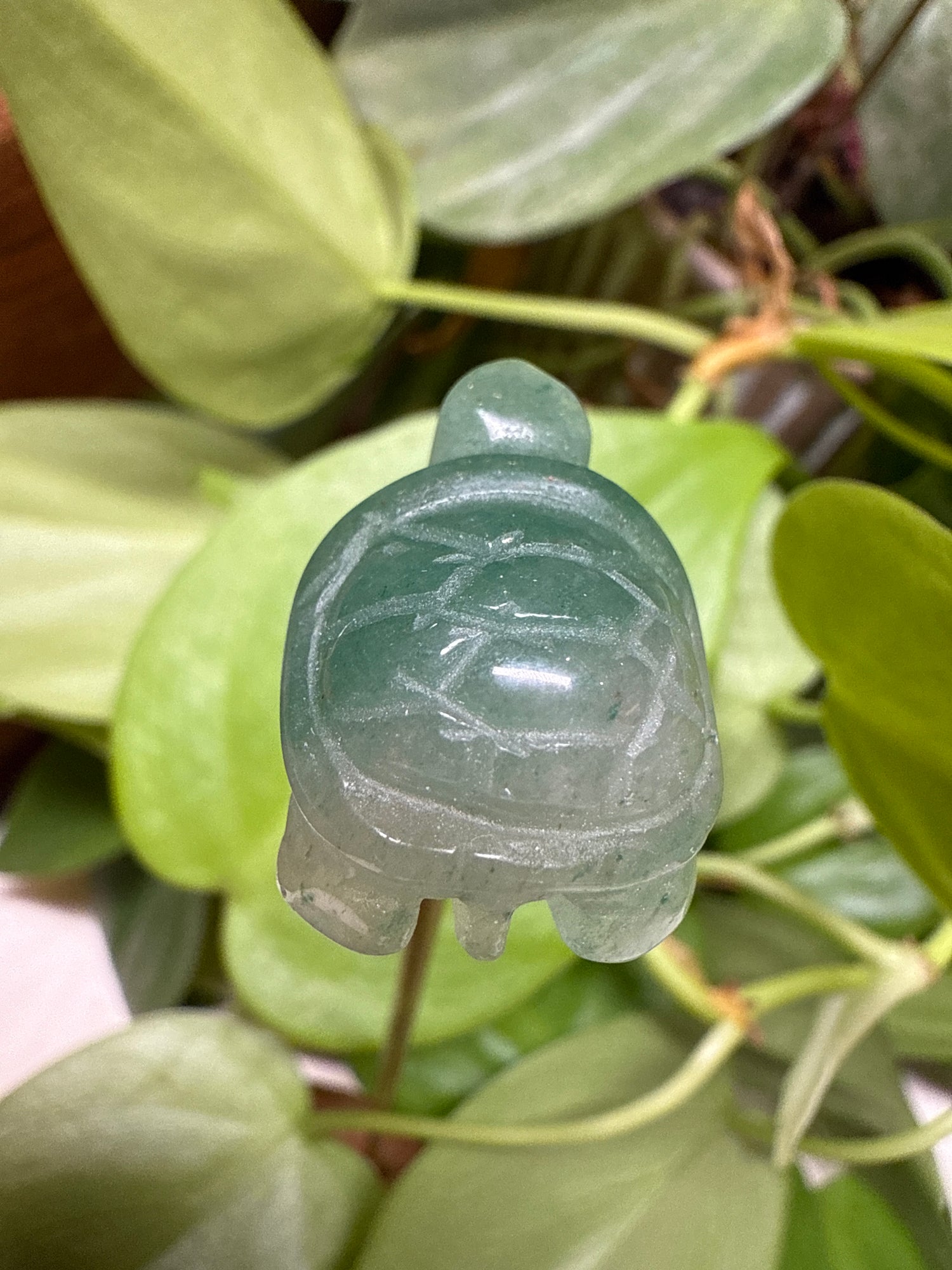 - Mini carved Green Aventurine turtle (each piece uniquely marbled in soft green tones)