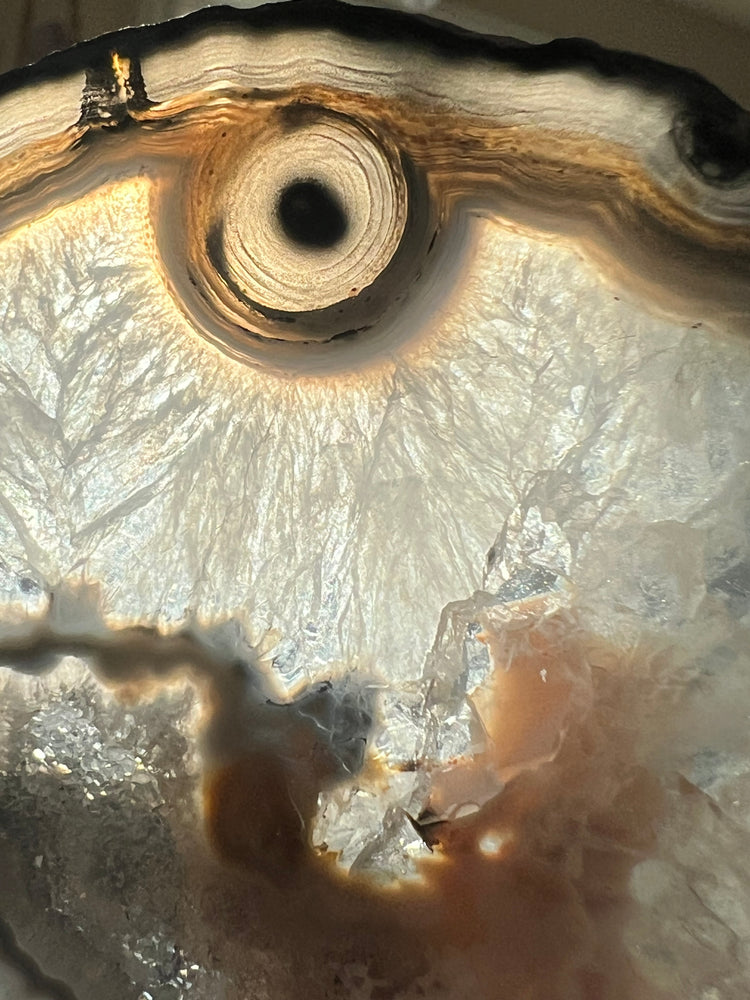 Large Agate with stunning colors with a super sparkly, drusy portal.