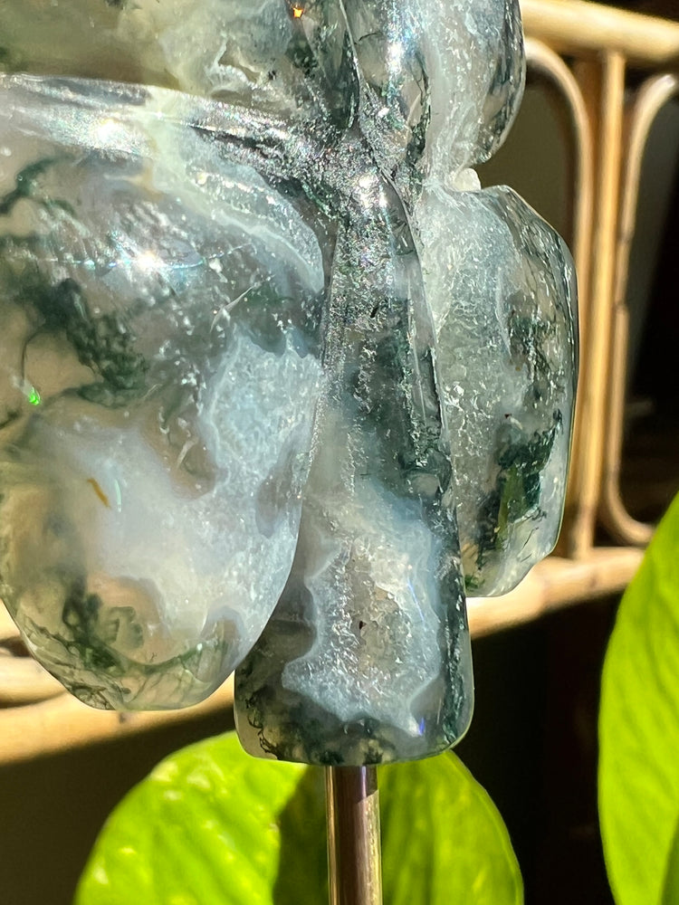 Lucky Four Leaf Clover Moss Agate Plant Crystal