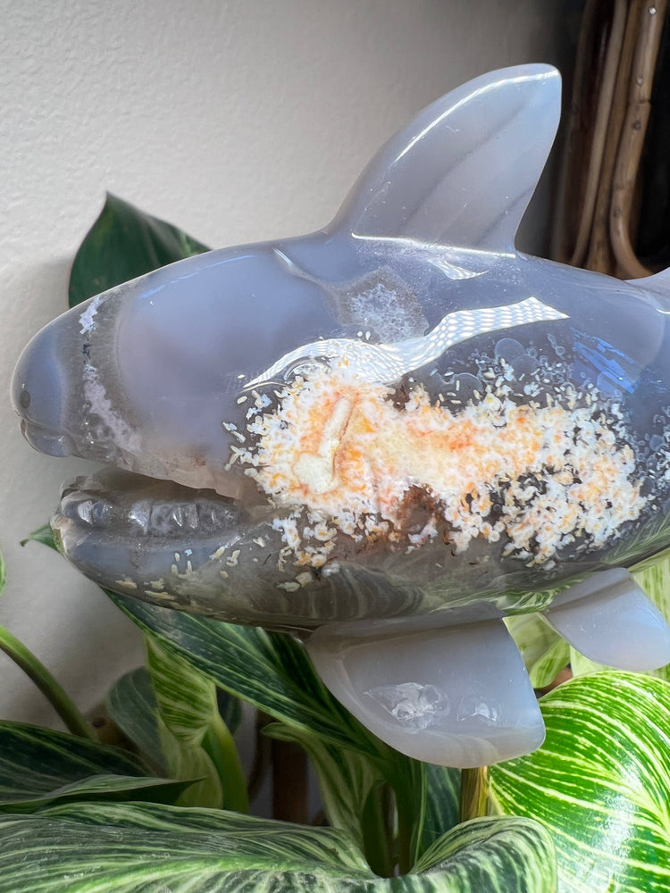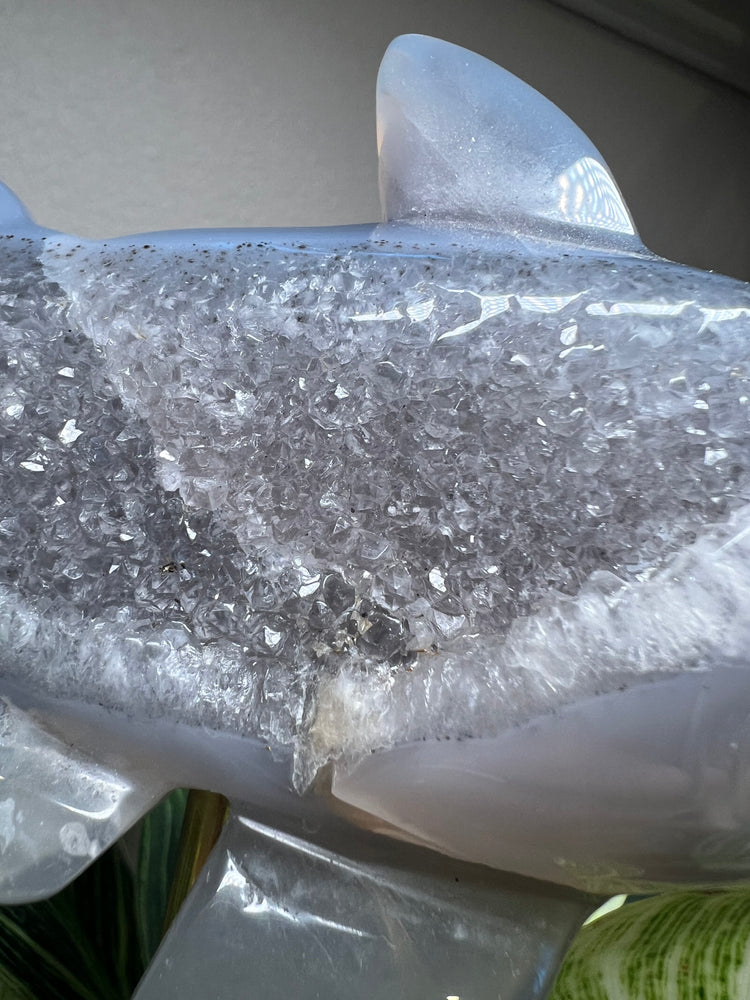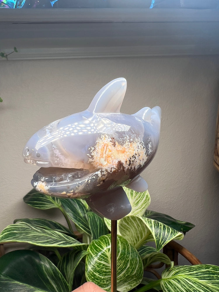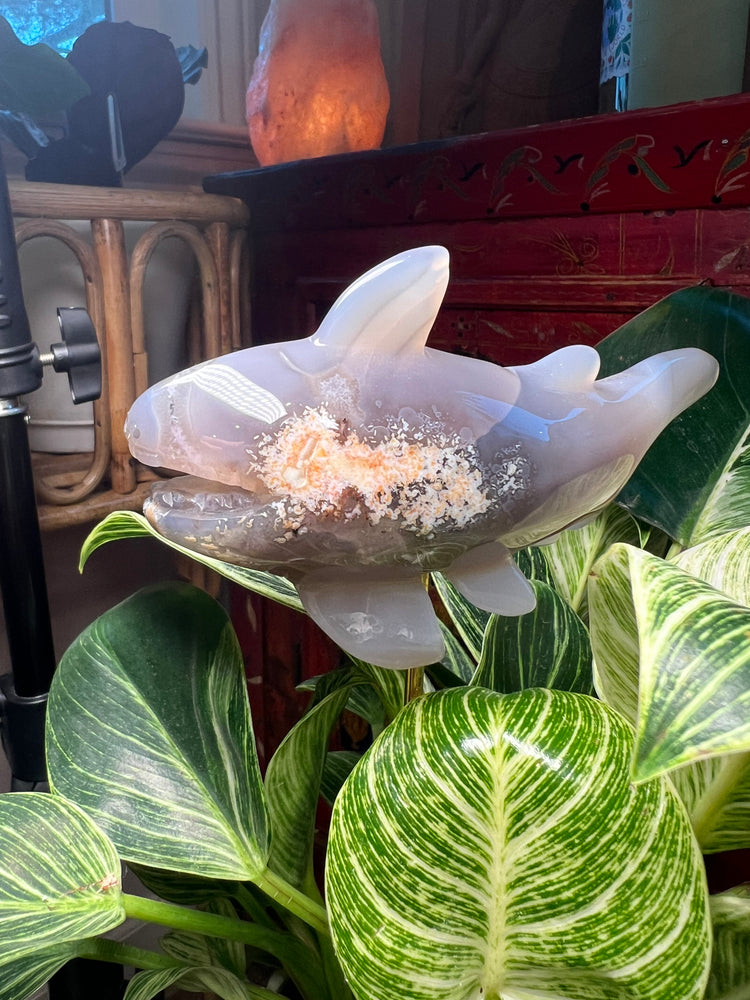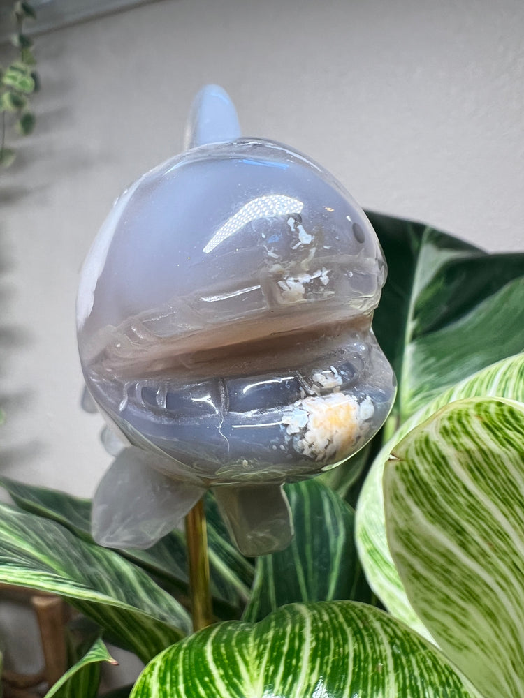 Rare* only one available. The friendliest shark you’ll ever meet! This guy is nearly the size of a real great white (just kidding! Haha! but he is a big Plant Crystal! He also glows and changes color in sunlight!