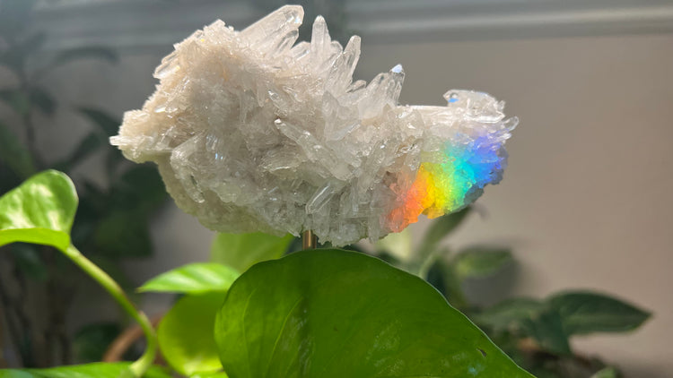RARE* Exceptionally clear AAA HIGH quality, large Quartz cluster with hundreds of quartz points and natural rainbow inclusions. A breathtaking piece that is so clear it will create multiple rainbows and prisms in your space if placed in direct sunlight!