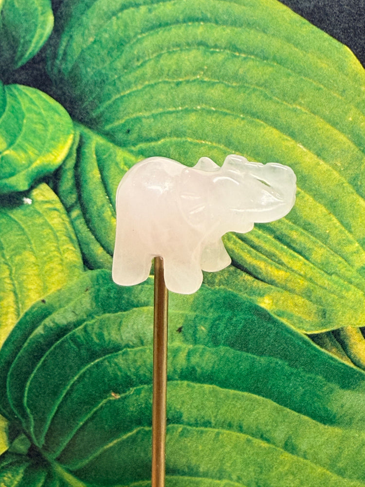 - Mini carved Rose Quartz elephant (each one uniquely colored in soft pink hues)