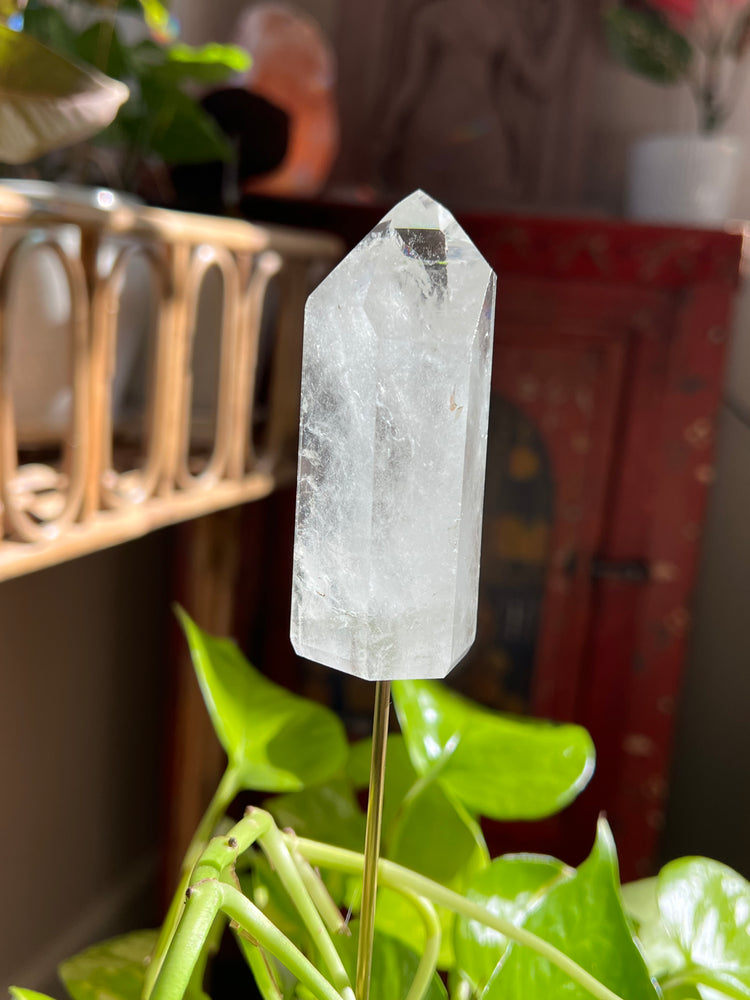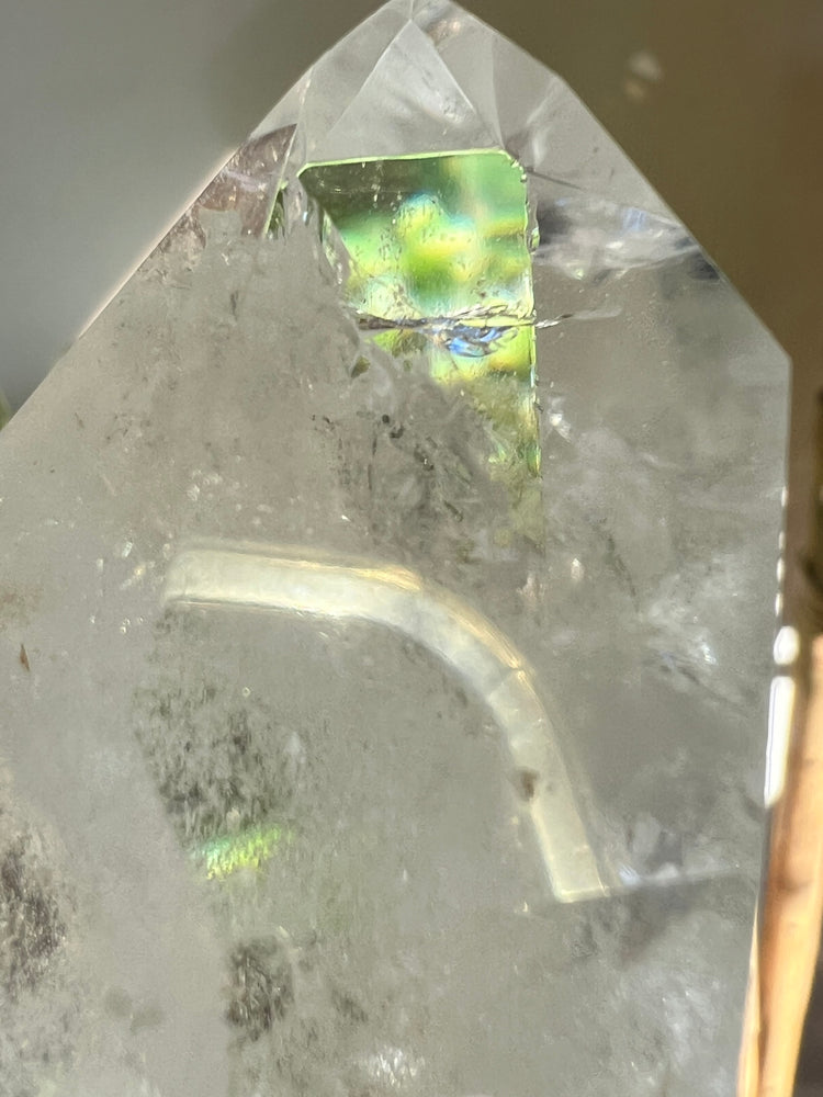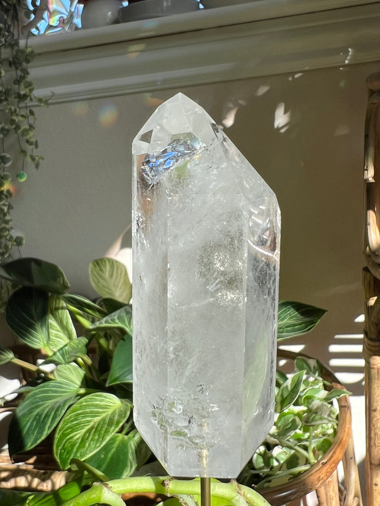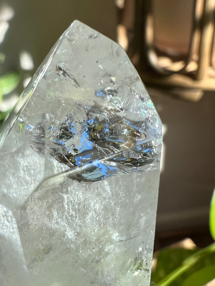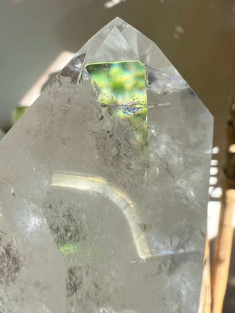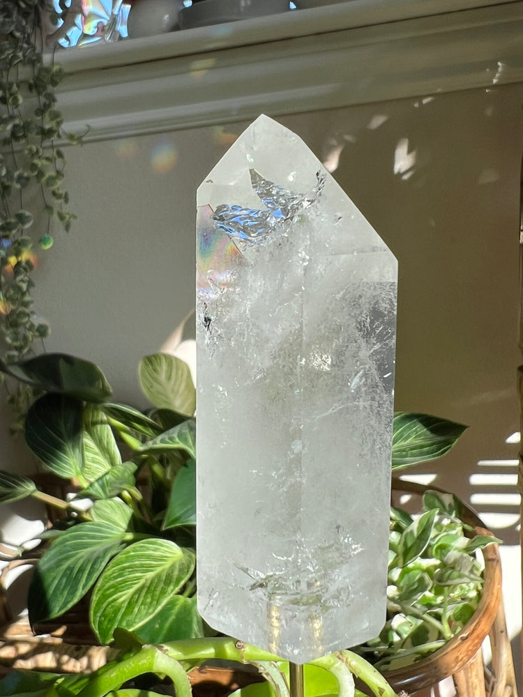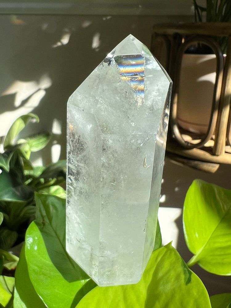 Large Polished Quartz tower that has natural rainbow inclusions and such brilliant clarity that it creates natural rainbows.