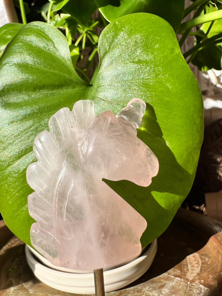 🦄 Rose Quartz carved unicorn. A beautiful unicorn gift for a unicorn or horse lover. Or just to add some magic to your plants and garden!
