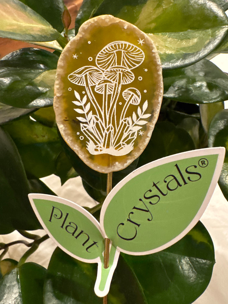 Yellow Agate with Engraved Mushroom & Crystal Design