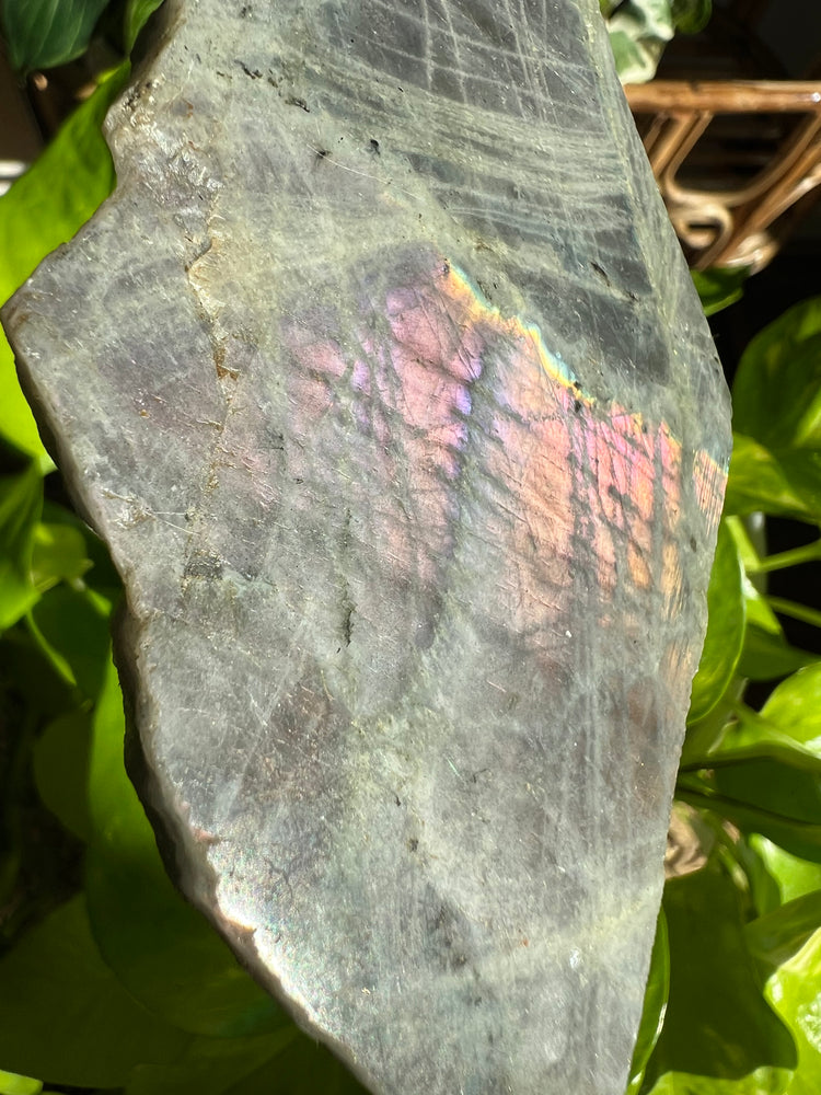 Large, beautiful, HIGH flash slab with rare Pink (glows and changes colors like opal and rainbow moonstone!). Incredibly pink & purple!
