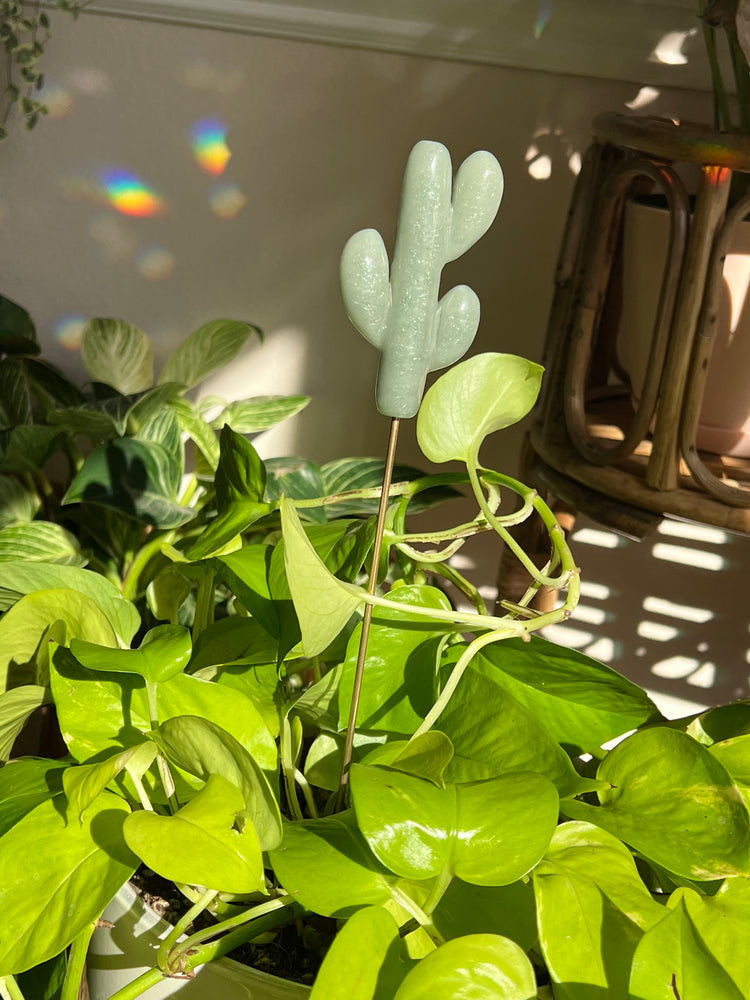 Large Cactus Plant Crystal with beautiful natural shimmer! Crystal itself is approx 4 inches tall! Looks perfect in a cactus or succulent plant. 🌵