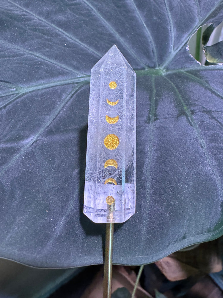 Golden Moonphase etched into the Quartz to amplify and manifest, balance and clarity in all phases of your spiritual or healing journey. All phases are sacred🌘🌑🌒