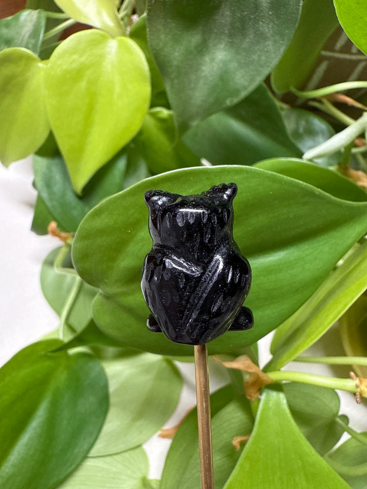 Mini Black Obsidian Owl plant Crystal  — Protection + Grounded Insight for Your Plants + Sacred Spaces