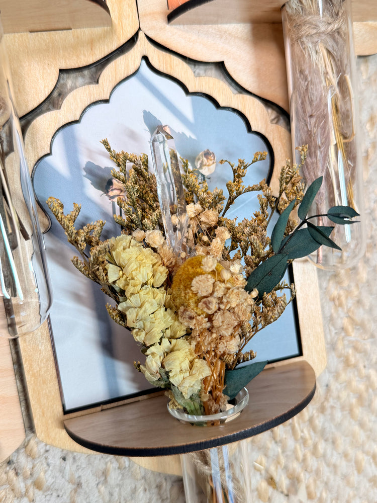 Designed to hold dried flowers, fresh blooms, plant propagation cuttings, and a chosen Plant Crystal, it transforms everyday plant care into a meaningful ritual of presence and intention.